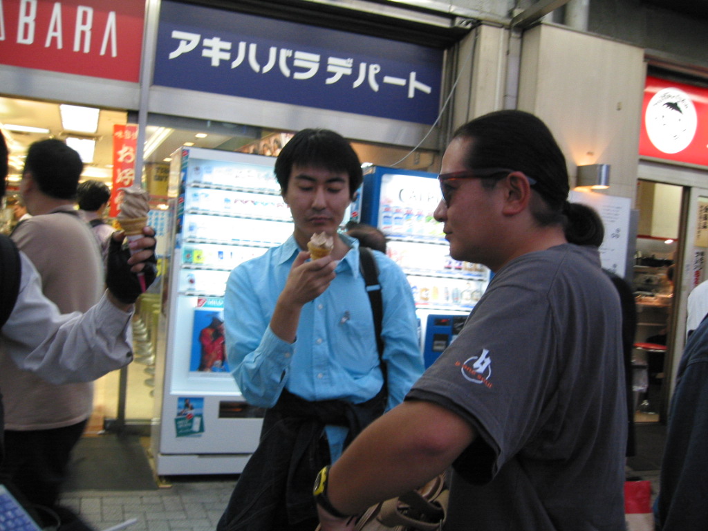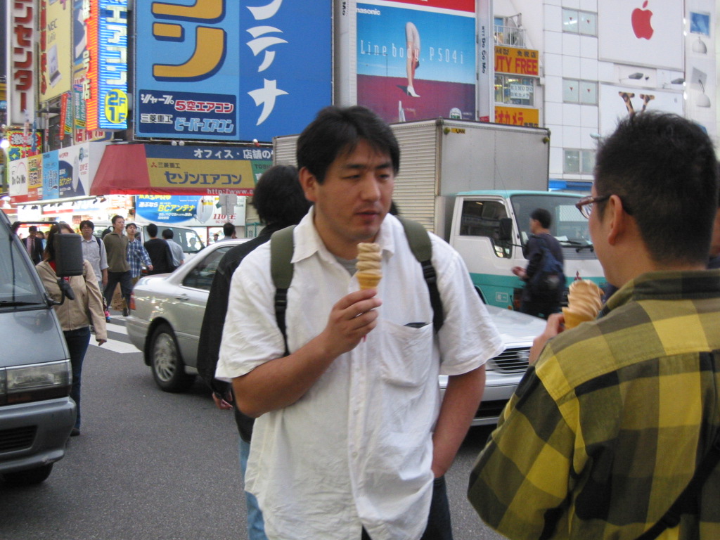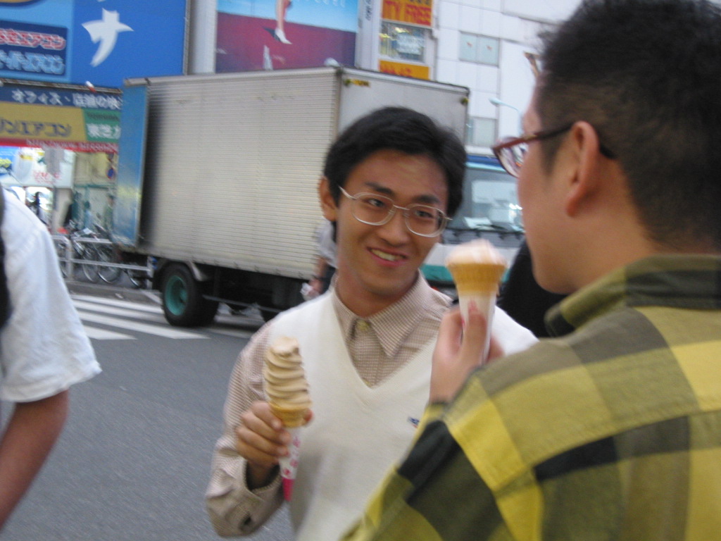 ゆやま と後ろ向きの GUTO^ 。みんなアイスが好き。