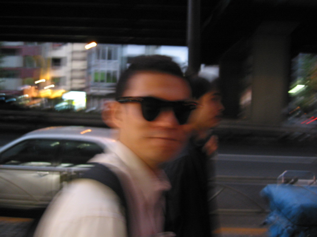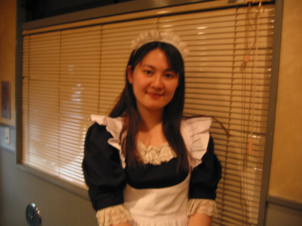 変なポーズでおもいっきりぶれる MAISON 。頭が光っている。